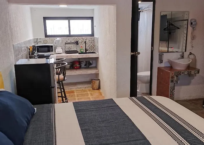 Casa Nance Alojamientos Uxmal Suite Ejecutiva Centro Mercado 28 Y Ado King Size Cancún, di 20 m², è situato nel distretto Centro di Cancún, a 700 m dalla Casa de la Cultura de Cancún. Il Wi-Fi e il parcheggio privato gratuito sono a disposizione degli ospiti per le loro esigenze di lavoro o di svago.